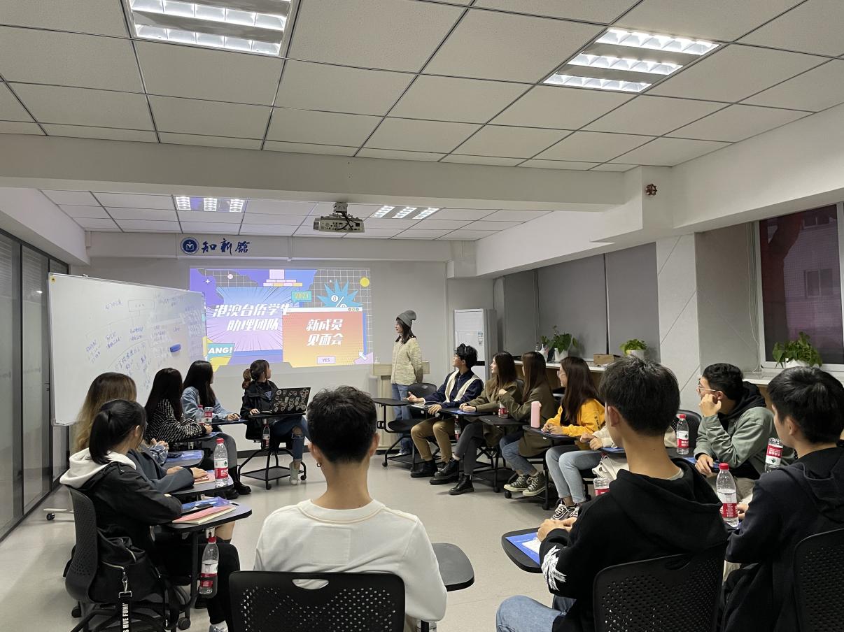 接着,由助理团队中的2021级新生依次自我介绍。新成员对自己的专业、特长方面做了详细介绍,表达对团队做出贡献的愿望,同时也希望通过自己的努力,帮助更多的港澳台侨同学尽快适应自己的校园生活。
