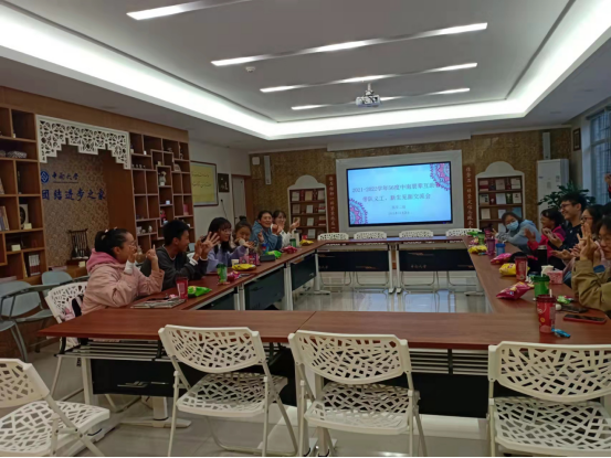 之后同学们一起观看了视频《唱支山歌给党听》、《第三届“民族团结一家亲”晚会》视频和56度中南工作室介绍视频,深刻地感受了浓厚的民族团结氛围,有效促进了各民族学生交往交流交融,同时也对56度中南工作室有了一个初步的了解。随后各组成员通过小游戏的方式进行了自我介绍,带队义工和自己组内的同学对接并进行了简单的交流。