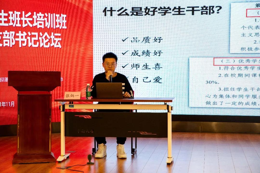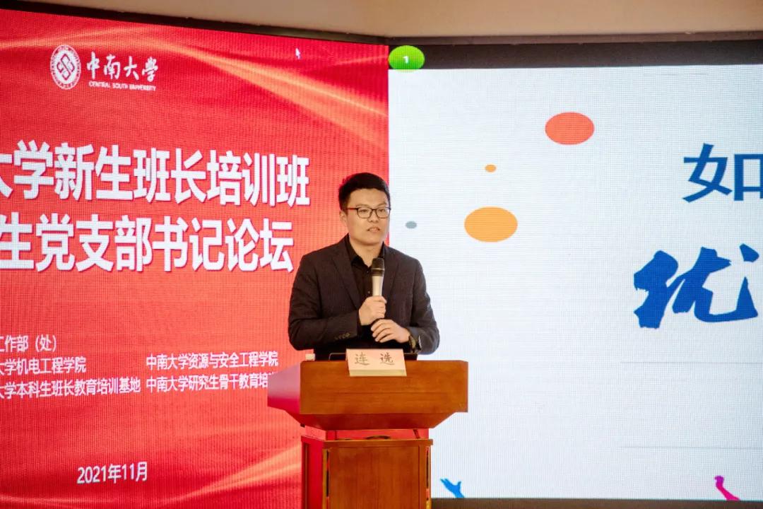 围绕技能提升,学生工作部张江华副部长、易险峰副部长、就业指导中心主任徐赞老师以及学生事务管理办公室刘勇老师分别以《学生干部情绪管理与压力应对》《党团班建设》《以终为始——大学生涯规划漫谈》和《“学在中南”优良学风建设》为主题,从心理健康教育、党团班级文化建设、职业生涯规划和学风建设等方面做了生动而详实的分享。
