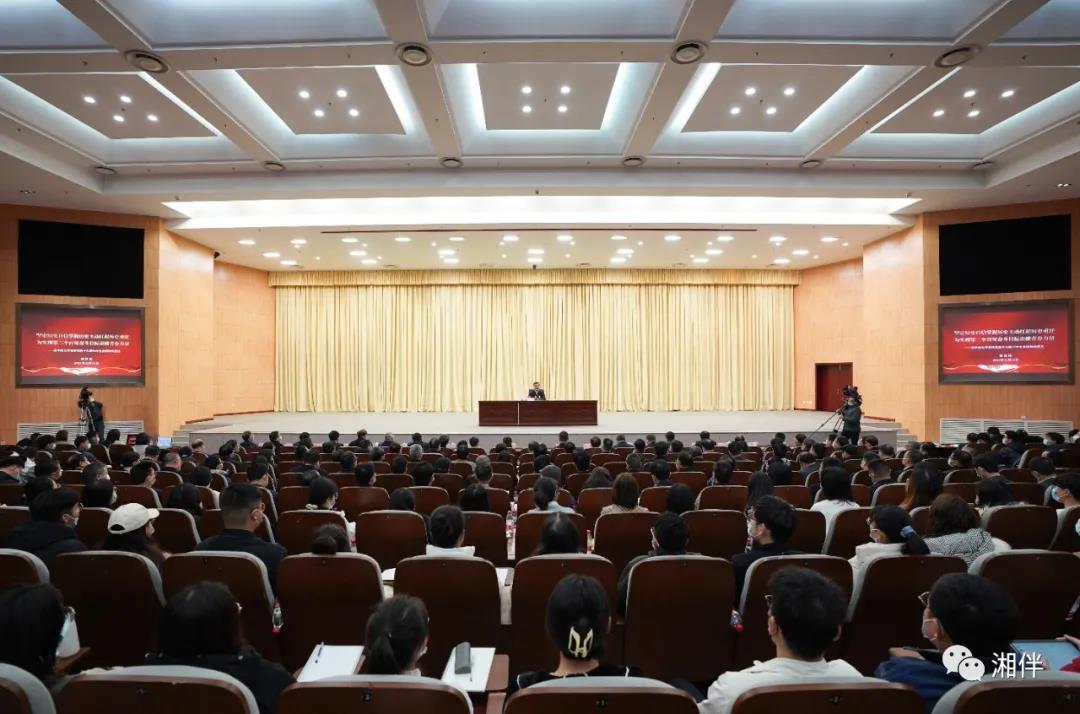 省领导谢卫江、杨浩东,william威廉英国官网校领导易红、田红旗,省直有关部门负责同志、william威廉英国官网师生代表、长株潭三市区内本科院校党政主要负责同志等参加宣讲会。