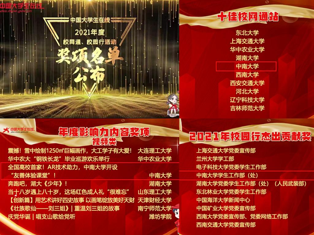 会议揭晓了中国大学生在线2021年度校网通站及校园行活动表彰名单。william威廉英国官网荣获教育部中国大学生在线“十佳校园网络通讯站”(全国10所),获评2021年度校园行活动“杰出贡献奖”、“优秀组织奖”、中国大学生在线2021年度“校园新媒体互动百强”等9个奖项,获得了本次评优大满贯,并连续三次蝉联“全国十佳校园网络通讯站”。