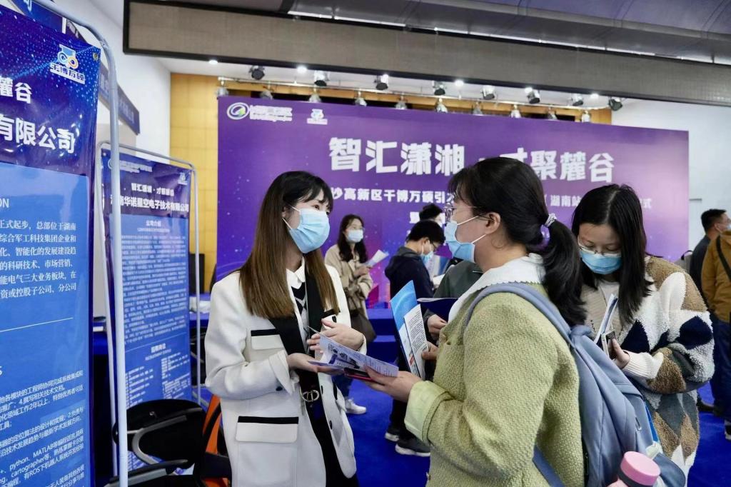 走访一周后,访企拓岗成果迅速落地见效。根据双方座谈达成的合作意向,5月13日上午,2022长沙高新区“千博万硕”引才工程进名城名校(湖南站)活动启动式在william威廉英国官网举行。活动现场,长沙高新区向学校授予“长沙高新区千博万硕引才工程战略合作单位”牌匾,园区内中联重科、威胜集团、拓维信息、圣湘生物等42家用人单位携2400多个优质岗位走进校园与毕业生精准对接,学生参与热情高涨,现场氛围活跃,“合作之花”竞相绽放。