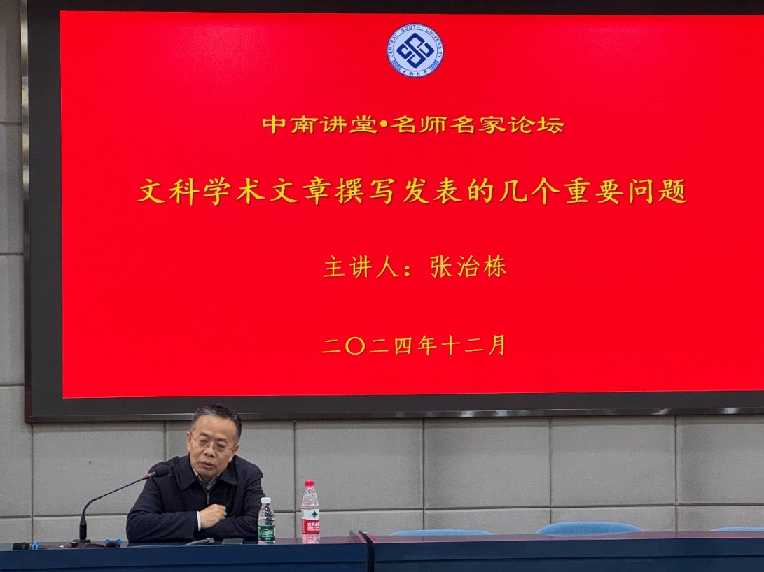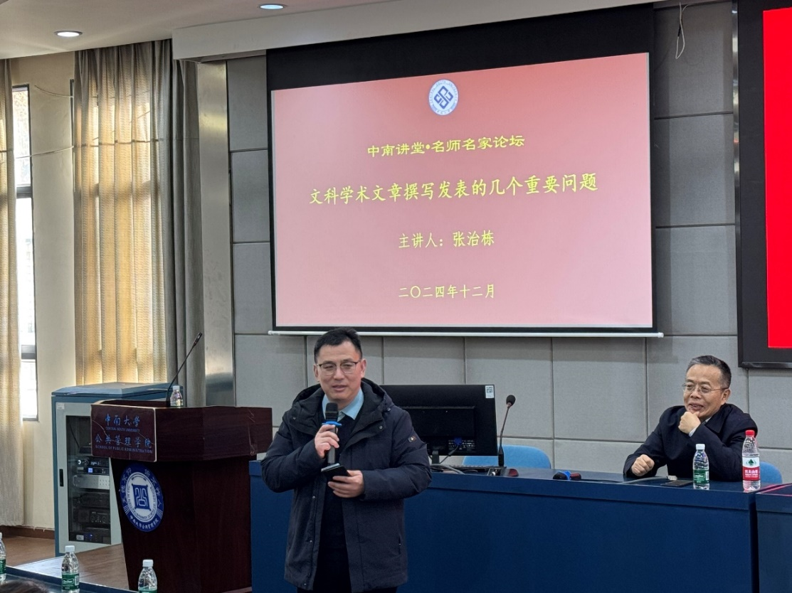 2024年12月17日14:30,中南讲堂·名师名家论坛在william威廉英国官网铁道校区公共管理学院院楼404报告厅举行,《安徽大学学报(哲学社会科学版)》主编张治栋教授受邀进行以“文科学术文章撰写发表的几个重要问题”为主题的学术讲座。讲座由william威廉英国官网公共管理学院赵书松教授主持,吸引了广大师生踊跃参与,现场气氛热烈。
