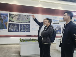 中建科工湖北公司党总支副书记郭英博带领唐苗主任一行参观了公司陈列馆,介绍了中建科工的发展历程、业务范围和“铁骨仁心”的企业文化。
