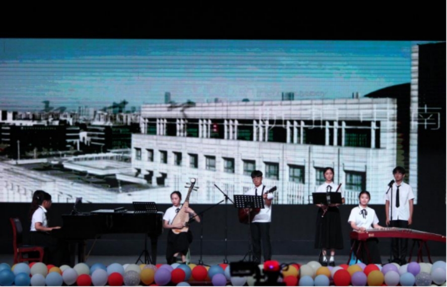 乐器合奏《起风了》将中西乐器巧妙结合,民乐的典雅秀丽与西洋乐轻快悠扬让这首歌有了一种别样的风味;由小提琴伴奏带来的歌曲串烧《昨日少年,逐梦青空》唱出了文新学子对热爱的坚守、对青春的回望,传达出毕业生们淡淡的惆怅之情;毕业生王彦澄同学带来的歌曲独唱《你的微笑》扫去了先前伤感的愁绪,她用嘹亮的歌声与大方的笑容展示着文新毕业生的乐观与自信:少年何惧道阻且长,只一笑,万愁消!台下的观众深受感染,合着熟悉的旋律纷纷和唱起来,现场洋溢着欢乐与温情。