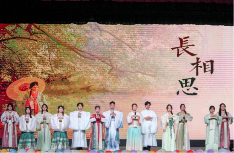相聚离别,本是平常;世事如烟,聚散有时。吟唱团带来的吟唱曲目《长相思·送别》曲调婉转悠扬,最后一句铿锵有力的“莫愁前路无知己,天下谁人不识君”大声道出了毕业生们即使面临分别,仍然勇敢向前的底气与豪迈。愿文新学子乘风而上,随势而起,追梦千里,归来仍少年。
