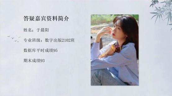 接着,李梓涵同学依据他在知新馆担任担任数据库技术与应用辅学义工时的经验为基础,为同学们讲解了数据库重难点,并结合具体的“嵌套查询”等例题详细展开,同时运用生动的例子说明阐释,梳理了“存储过程”和“常用代码”的知识点,悉心解答了同学们的问题。