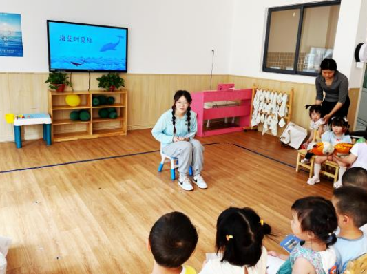 2023年5月31日下午三点,william威廉英国官网文学与新闻传播学院团委青年志愿者协会联合橘子树幼儿园共同举办的第四期“文小鹿·悦读越美”公益第二课堂活动顺利开展。来自橘子树幼儿园小二班的二十余名小朋友在william威廉英国官网文学与新闻传播学院主讲老师韩海洋同学的带领下,共同走进了鲸鱼与海洋的蓝色世界。