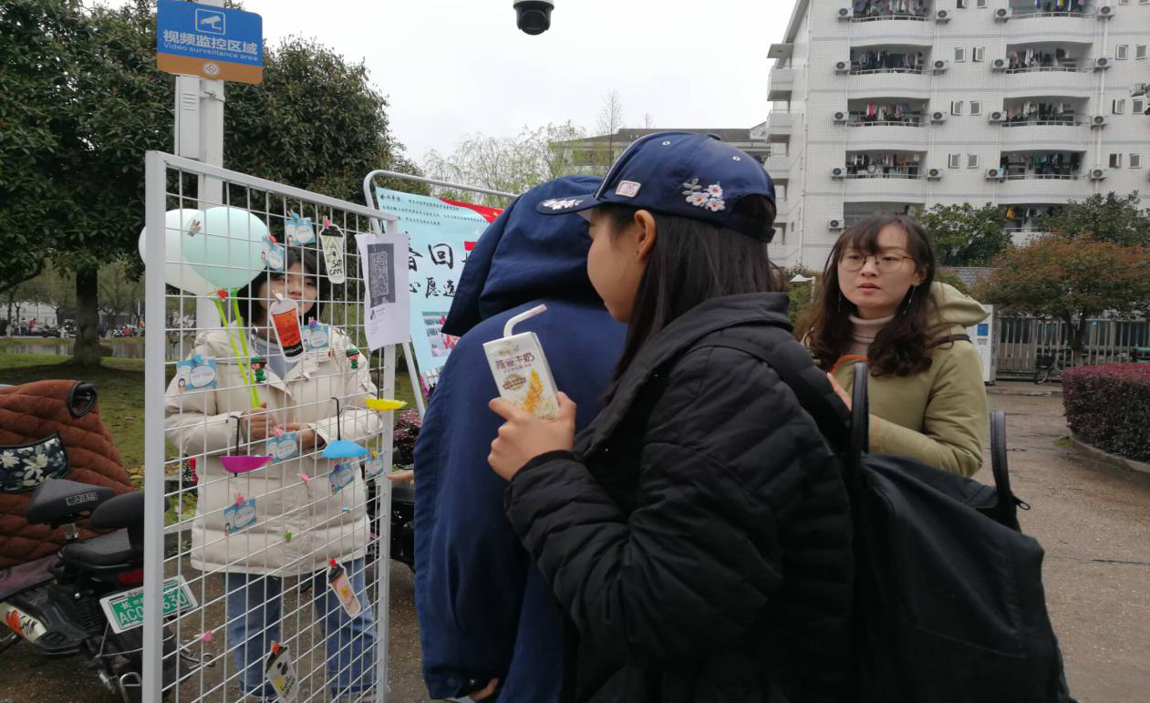 斜风冷雨并未浇灭同学们的热情,他们或三或两地聚在展板前,细心挑选着卡纸。有的同学已认领了自己想帮忙完成的心愿,并在青协处登记个人身份信息和心愿编号;也有的同学徘徊在展架前,与朋友商议着各自的选择。不到一天时间,原本挂得满满的展架已空空荡荡。