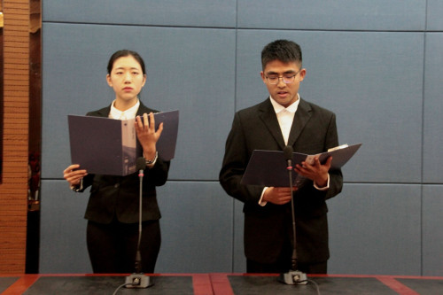 大赛中,参赛选手们准备充分,展现出文院学子深厚的文化底蕴与文学素养。在作品《穿越时空,矢志不渝》中,身着民国服饰的选手以手抚膺,深情地表达着革命者为国家大业视死如归的奉献精神;诗歌《光的赞歌》,选手以慷慨激昂的语调,传递着革命先烈们对光明未来的追寻;将情景剧与诗朗诵有机融合的节目《祈祷》,展现了战争年代青年学子忧国忧民的情怀……和着深情或雄壮的配乐,衬着精心制作的幻灯片,选手们热切真诚地表达着对伟人的缅怀和对祖国改革成就的歌颂。