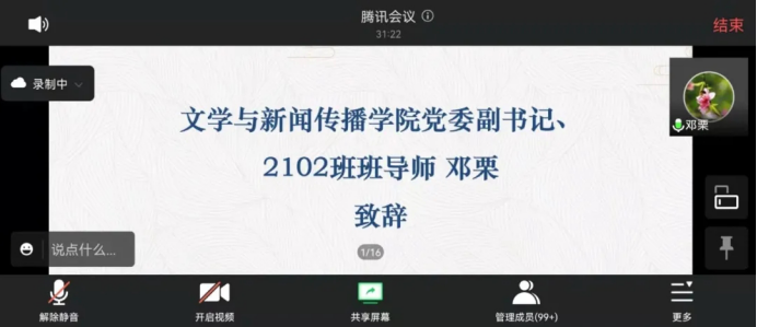 11月8日晚七点,文新院2012、2013级优秀毕业生经验线上分享会正式召开。文新院党委书记罗军飞,党委副书记邓栗,党委委员、中文系主任龙丹,学工办主任唐苗出席会议,2021级辅导员杨紫金主持会议,2012级毕业生马赜博儿、2013级毕业生温晓萌、马云、李想、李子君、洪振豪、张子晨、任世友受邀出席,并就同学们预先提出的问题进行解答。