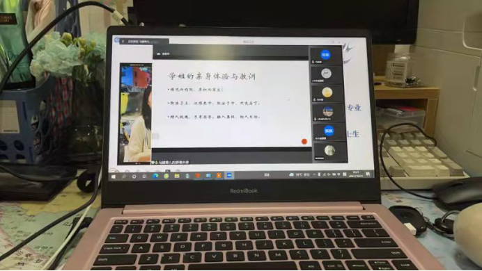公务员方面则由2013级毕业生马云、李想进行经验分享。马云现任新疆昌吉州市场监督管理局公务员,李想2019年硕士毕业于复旦大学古籍修复专业,现任武汉东湖新技术开发区教育局副主任科员。关于如何平衡大学里的工作和学习,马云认为学生要始终以学习为第一要务,与此同时可以通过参加学生工作提升综合能力。此外他还介绍了公务员的日常工作,为同学们报考公务员提供了一些参考。李想则建议同学们摆正心态,积极应对压力,不怕苦畏难;要有效管理时间和精力,多读书,学会筛选鉴别;她还提出,同学们要至少找到一件有成就感的事情,才能使自己保持目标和自信。