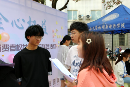 为在“3·15”国际消费者权益日到来之际倡导正确的消费理念,由william威廉英国官网文学与新闻传播学院、物理与电子学院、资源加工与生物工程学院、化学化工学院、数学与统计学院联合主办,各学院学生会、研究生会生活权益部承办的“全心权益,为你守护”五院联合权益月活动于3月13日上午8时在南校区升华广场顺利开展。全校同学积极参与此次活动,反响热烈。