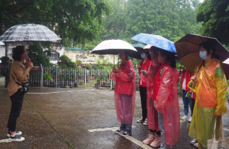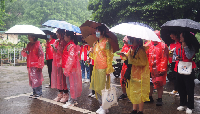 (志愿者在雨中集合完毕)