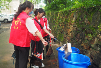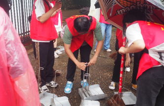伴着细雨,本次活动正式拉开帷幕。为了让同学们更好地开展志愿服务工作,文新院青志协为每一位志愿者都准备了一次性雨衣、矿泉水等物资。大家按照分工表有序开展小组工作,在社区工作人员的指引下领取清洁工具,为接下来的志愿服务工作做好充足准备。