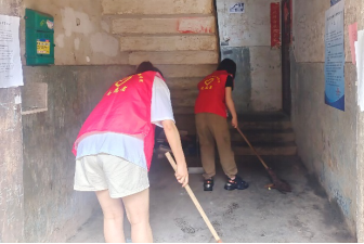 (志愿者清扫楼道)