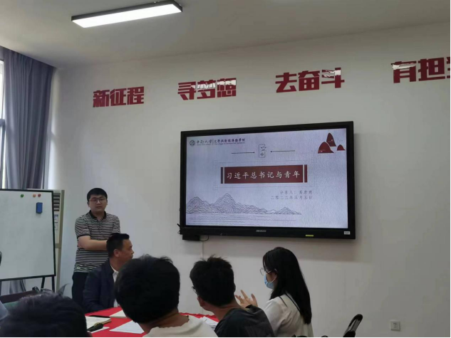 会议伊始,易孝慈老师带领大家进行了“习近平总书记与青年”的专题学习。他详细讲述了习近平总书记的大学足迹、五四足迹,和同学们分享了习近平总书记给青年的回信,他表示,希望大家能够以此为动力,立大志、明大德、成大才、担大任,牢记总书记的谆谆教诲,立志民族复兴,不负韶华,不负时代,不负人民,在青春的赛道上奋力奔跑,争取跑出当代青年的最好成绩!