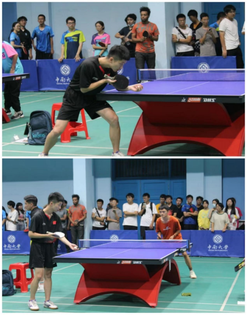 这场比赛欢呼不断,双方棋逢对手,不相上下。乒乓球以直线的形式穿梭在观众眼中,一次次飞到刁钻的角度后又被不可思议地扣回,鼓掌声愈演愈烈,比分始终没有拉开很大差距。最后来到了加时赛。在加时赛中,比分依旧相差无几,双方选手更是筋疲力尽,汗流浃背。然而,在这么紧张的比赛中,他们依旧不忘对对手表示友好,在调整状态时相互问好,展现中南学子友谊第一,比赛第二的风采!最终,加时赛我院以11:9取胜。