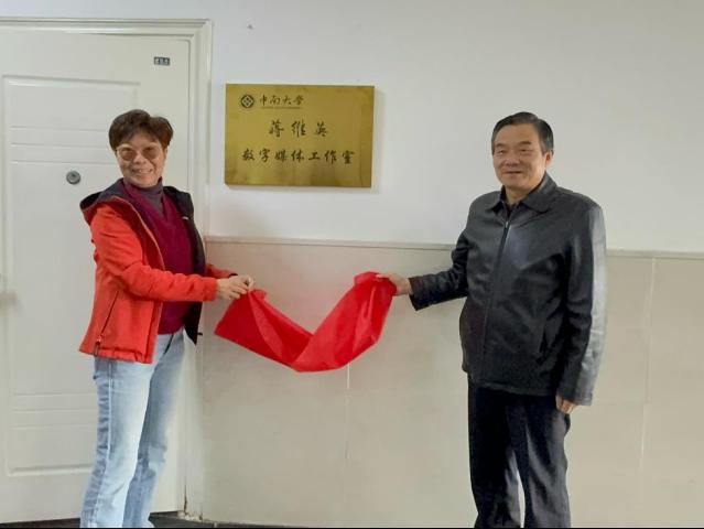 会议结束后,学院领导与蒋岳慧女士共至外国语学院6楼,为蒋维英数字媒体工作室进行授牌。