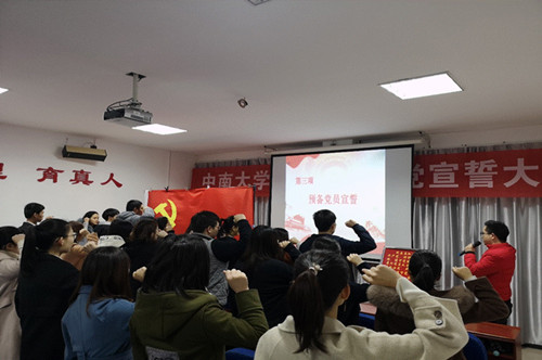 此次入党宣誓大会在《国际歌》的旋律中落幕。共产党组织解放被压迫民族的历史如电影画面一幕幕在参会者的脑海里回放,在场的同志们无不对党心怀忠诚和敬意,无不坚信党的伟大。相信预备党员们都能将宣誓内容铭记于心并化于行,早日成为一名共产党员,为党的事业奋斗终生。