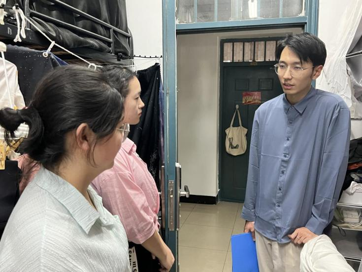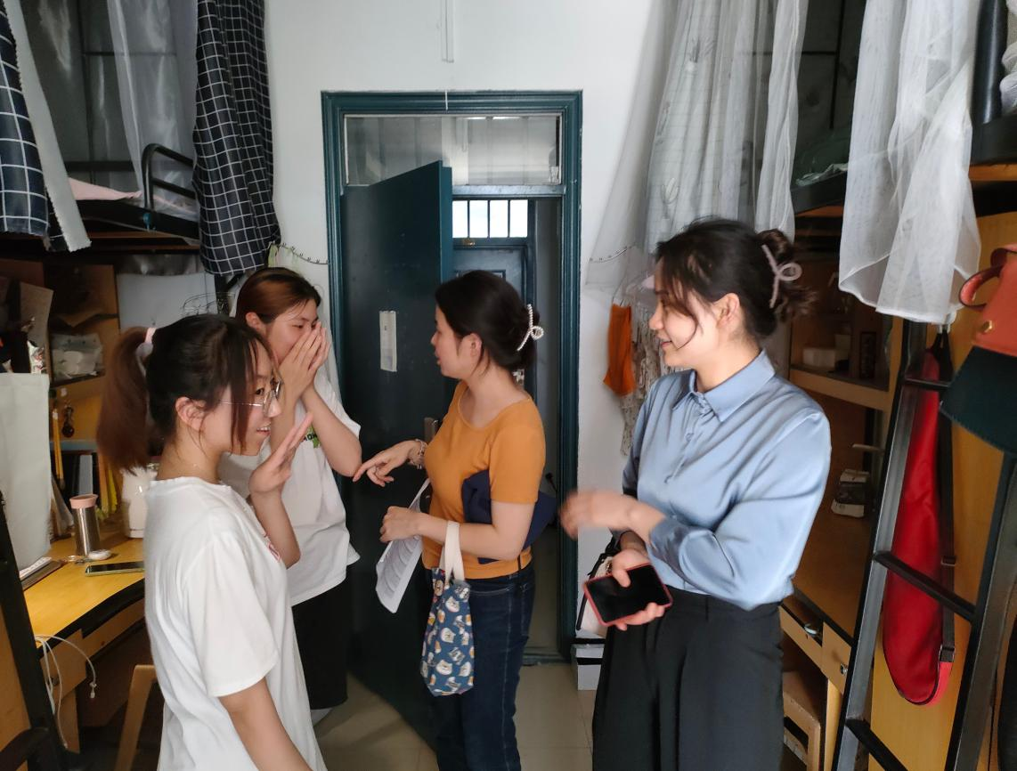 各年级辅导员首先与16栋宿管阿姨进行交流,对本楼栋学生住宿情况和日常生活进行针对性了解。