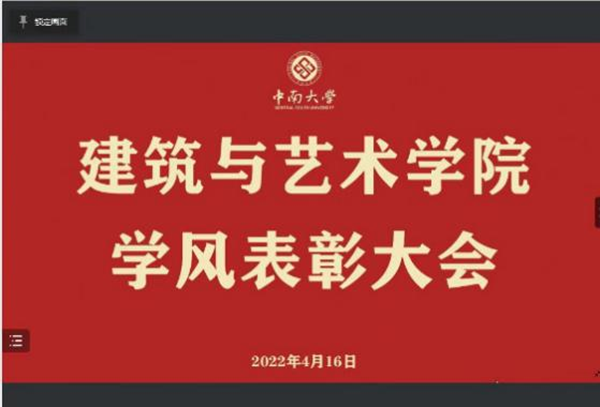 为进一步推动我院学风建设工作,营造全院勤学善学、好学乐学的良好学习氛围,同时积极引导新生树立学习目标、培养学习热情,4月16日下午15点,建筑与艺术学院2021-2022学风表彰大会在线上举行,会议由2021级艺术类本科生辅导员方艾芬老师主持,大一、大二全体学生参加。