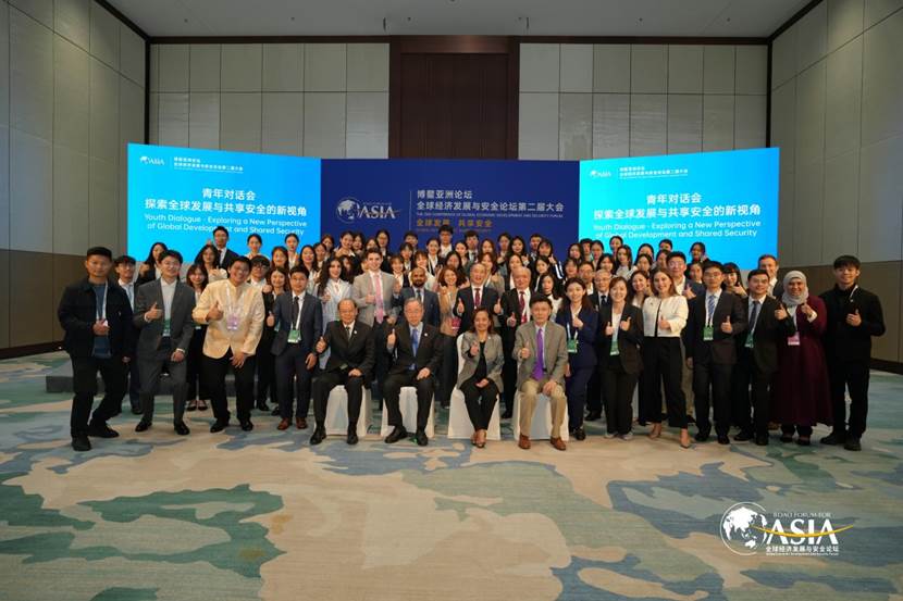 10月29日下午2:30,以商学院袁康、毛一鸣等40名博硕士研究生为代表的青年代表团,在卢思远老师带领下,参加以“探索全球发展与共享安全的新视角”为主题的青年对话会。对话会由博鳌亚洲论坛全球经济发展与安全论坛大会主席曾伟雄主持,博鳌亚洲论坛理事长、联合国前秘书长潘基文,博鳌亚洲论坛理事、菲律宾前总统阿罗约和清华大学苏世民书院常务副院长潘庆中教授分别进行了致辞。