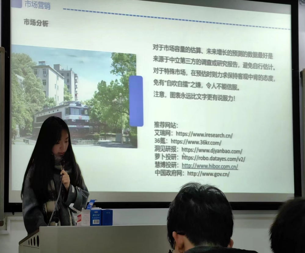 二位主讲人从分享自己的竞赛经验入手,由“升华杯”比赛拓展到其他各类比赛的参赛要点及商业计划书的撰写,为同学们做了深入浅出的讲解,使同学们对“升华杯”这项比赛有了更深刻地了解。