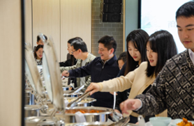 在席添添老师主持下,学院领导与学生代表依次取餐,有序落座,随后午餐会正式开始。院领导与学生代表们围坐在一起。在轻松愉快的氛围中,各学生代表纷纷向学院领导提出自己在学习、生活、未来规划等多方面的困惑。学院领导们耐心倾听,认真解答,给予了学生们宝贵的建议与帮助。