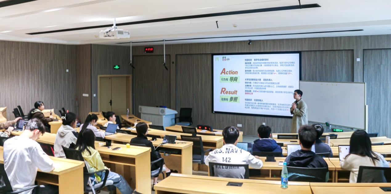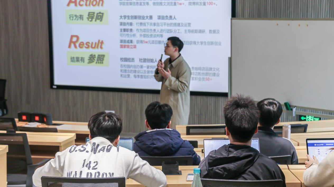 此次讲座围绕面试准备、面试题型详解以及面试官技巧分享展开,内容由浅入深、鞭辟入里。讲座起始,小杰老师以幽默风趣的方式与学生们互动,调动现场的气氛。随后,除了传授基础面试知识外,小杰老师还从细节出发,利用坐姿、手势、眼神等进一步展现面试技巧,帮助学生们明白如何在面试中展现出其专业性。