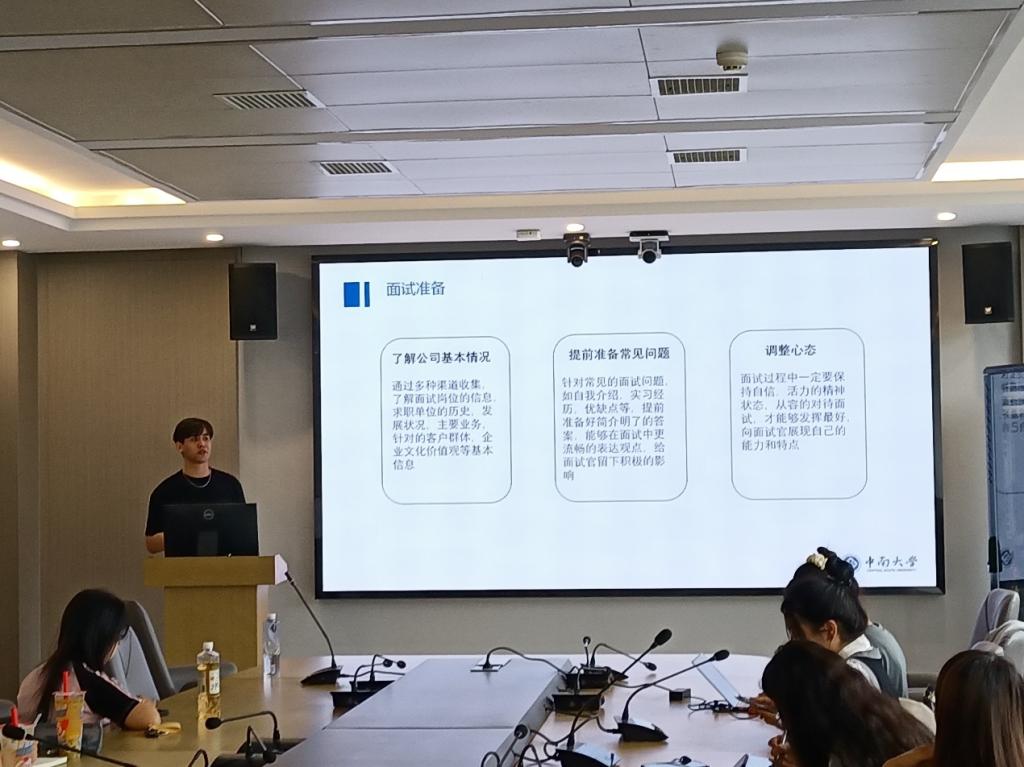 最后,努尔夏提·麦麦提艾力、马艳从就业方向出发,传授自身经验。努尔夏提·麦麦提艾力依据自身求职经历,总结应届本科生需要重点关注的内容,详细分析简历设计、面试准备等环节的要求,并提出自己的思考。马艳展开介绍求职过程的各个环节,以简历各板块内容填写、个人背景介绍技巧等方面举例,建议在场学弟学妹多加关注细节,完善求职资料。