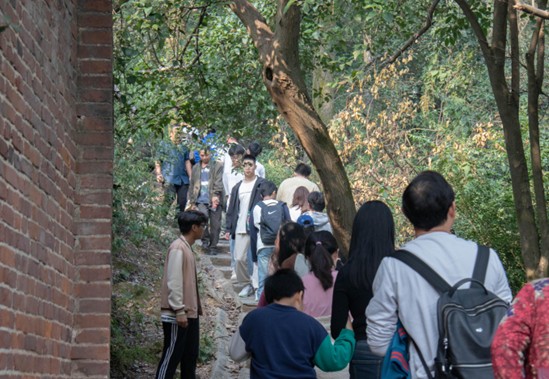 从校本部的入口启程,同学们先通过了一段较长的石质阶梯,而后进入大道,在约一个小时的路程中初探麓山。尽管路途遥远、十分耗费精力,同学们依然保持着攀登的热情,一路前行、一路向上,终于成功登顶,一览如画风景。
