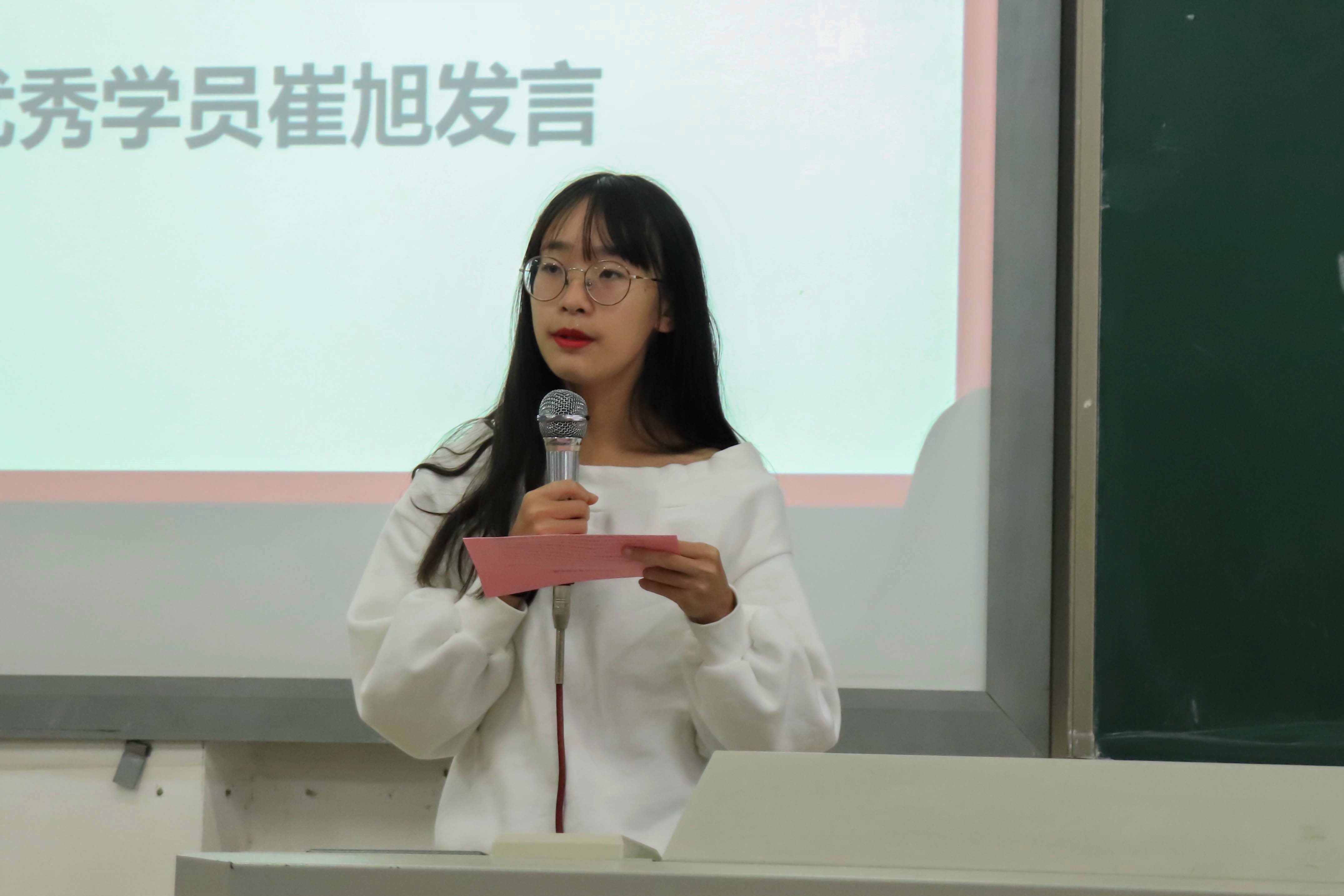 致辞完毕,2018级优秀学员代表崔旭同学及2019级学员代表张立颖同学先后发言。她们详细回顾了各自的工作经历,分别重点讲述了自己对“薪火计划”的理解或期待。