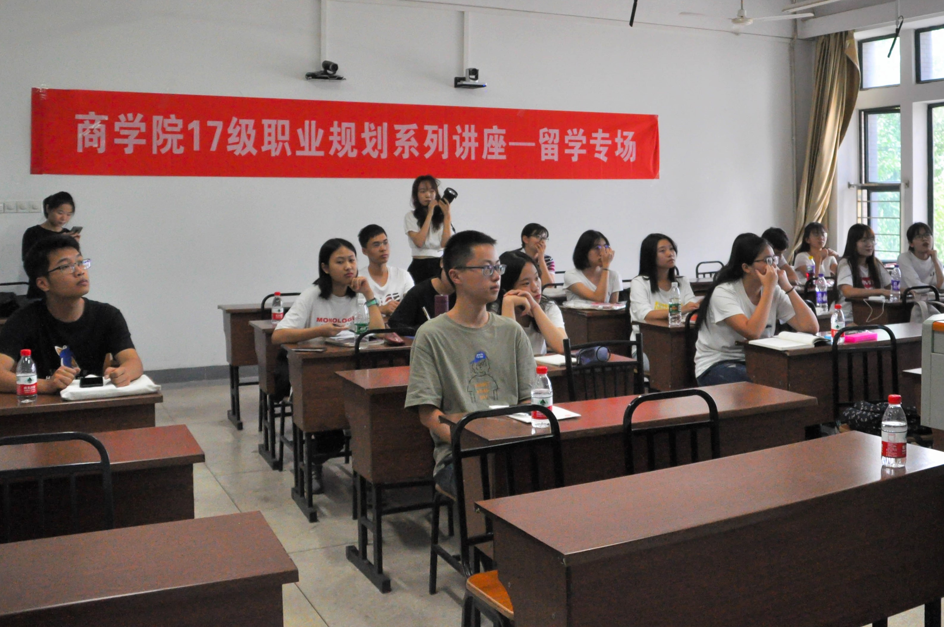 9月25日下午,商学院17级留学规划讲座在新校区A座222教室成功举办。本次讲座邀请了卓引留学创始人李纪勇老师担任主讲,为同学们的留学规划进行指导,17级辅导员梁程浩老师出席会议。