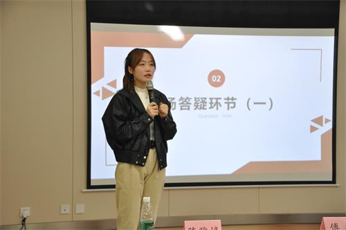 首先,优秀学生代表陈雅婷从选题、作品申报、组建团队、加分项四个方面,详细讲解了升华杯的内容,分享了她的参赛经验。她鼓励同学们勇于尝试,将知识运用于实践,促进自身的全面发展。
