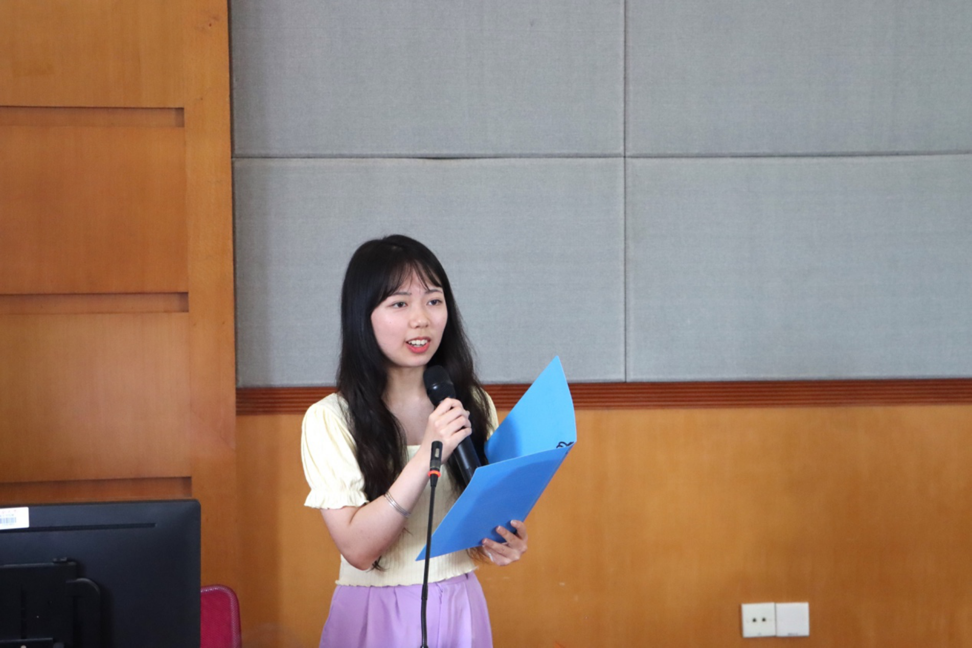 接下来进入部长竞选环节,办公部干事张赫,运营部干事张芷若、江宛月,记者部干事蒋雨杉、何骏宇、戴然鑫,网宣部干事杨昕瑶、阿依赛娜木,美编部干事牟艺凡依次上台进行竞选演讲及答辩,他们回顾了自己一年的工作历程,展现自己的竞争优势,提出对未来工作的规划。