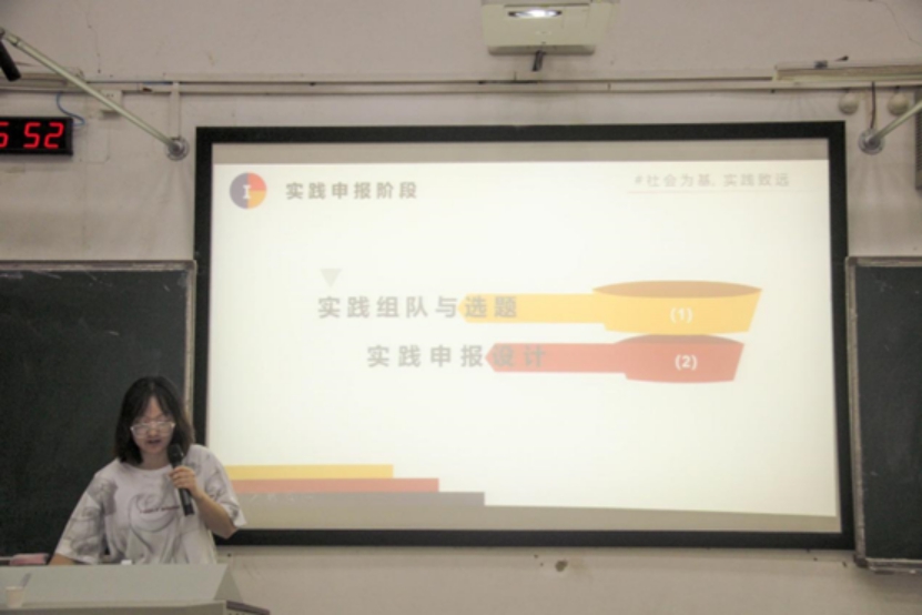 随后,刘静宜从申报、具体过程、总结三个方面详细介绍了社会实践的流程。