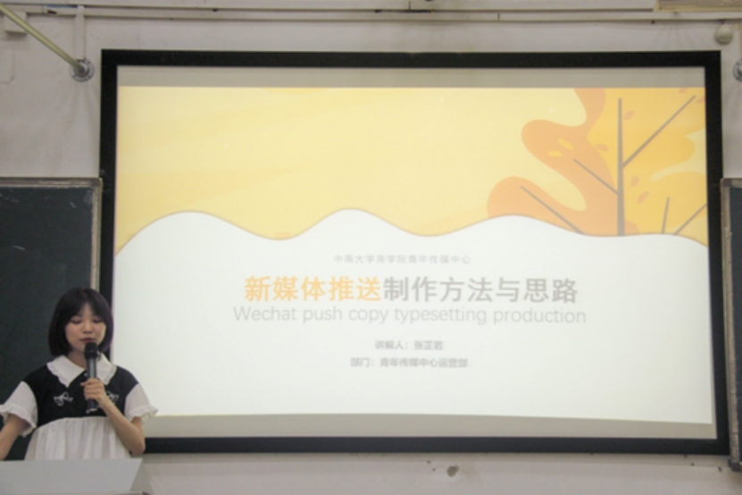 紧接着,会议进入经验分享与技能传授环节。张芷若讲解了微信推送撰写和排版制作的技巧;蒋雨杉则介绍了新闻稿的写作方法与摄影技巧,强调社会实践过程中要明确通讯员的定位,勤看勤思勤记,充分记录过程素材。