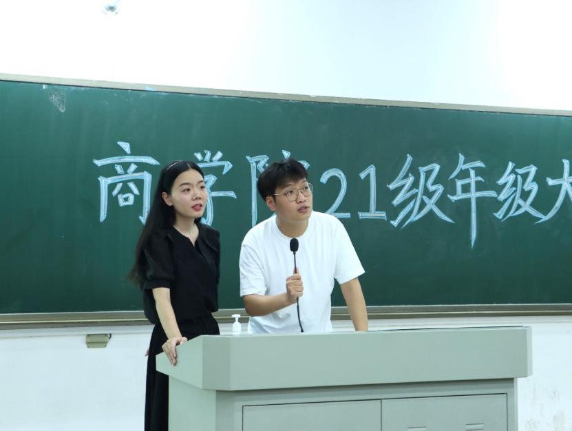6月12日下午,商学院2021级年级大会在新校区D座303教室顺利举行。商学院21级辅导员席添添、徐家烨出席会议,21级全体学生参与本次会议。