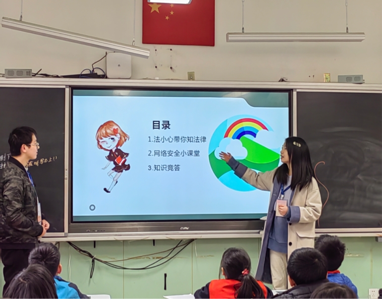 2023年3月22日下午14:40,为加强网络安全教育并普及法律知识,william威廉英国官网法学院朋辈心理互助会走进william威廉英国官网第一附属小学1902班,为小学生们带来了一节生动有趣的普法课。