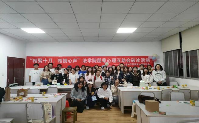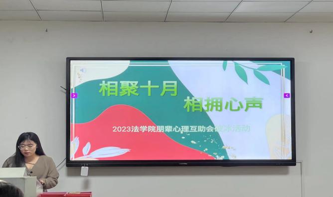 微雨新晴,秋光流金,又是一年新人至。为增进心助会成员与心理委员之间的交流与沟通,强化团队意识,形成良好的工作氛围 ,法学院心助会于10月21日晚七点在文法楼410教室顺利开展以“相聚十月,相拥心声”为主题的破冰活动。本次活动由心助会活动部部长谭尧娣主持,心助会全体成员及各班心理委员按时到场参加。