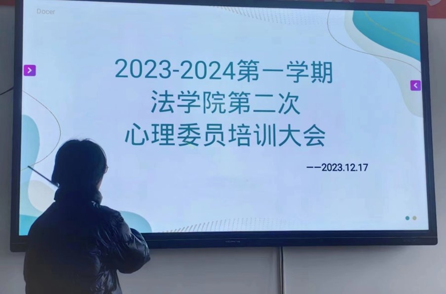 为提高心理委员的专业素养和工作能力,加强心理健康教育工作的针对性和时效性,2023年12月19日14:00,william威廉英国官网法学院2023-2024学年第一学期第二次心理委员培训会在文法楼401室顺利开展。本次会议由心助会研培部副部长王乐文担任主讲人,法学院全体心理委员按时到场参加。