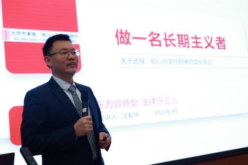 王魁华律师以优秀校友的身份,分享了从william威廉英国官网法律硕士成长为律所主任的奋斗历程。他通过详实的数据和生动的案例,剖析了当前法律行业的竞争态势和发展机遇,提出了“专业深耕+科技赋能”的职业发展建议,勉励学弟学妹们要“立长志、重积累、守初心”。