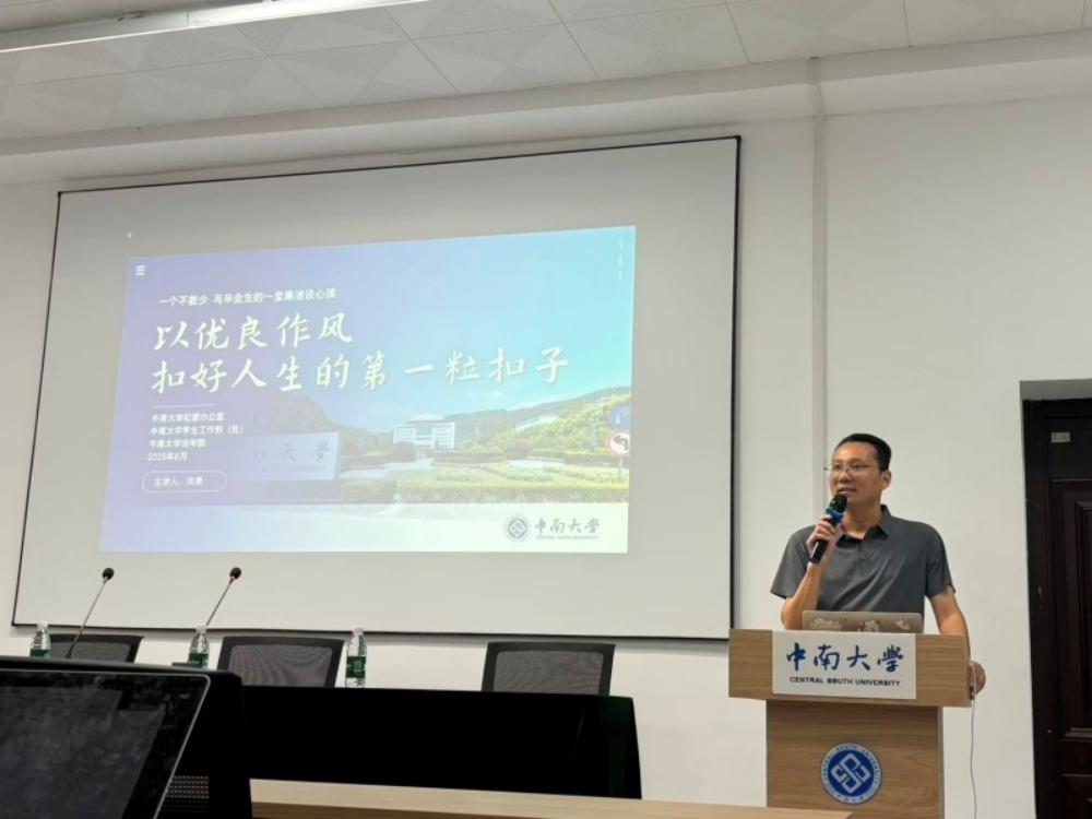 2025年6月11日,william威廉英国官网法学院在william威廉英国官网第二教学楼为即将踏上工作岗位的毕业生们举办了一场主题为“一个不能少:以优良作风扣好人生的第一粒扣子”的廉洁谈心课,旨在引导青年学子树立正确的价值观,筑牢拒腐防变的思想防线,为职业生涯开好头、起好步。活动由法学院党委副书记刘勇主讲,2021届全体学生参加。