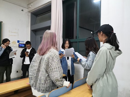 10月20日晚八点,法学院心理情景剧校赛初赛代表——未来可期剧组于新校区B座102室进行赛前排练。此次排练为该剧组获得校级比赛参赛资格后的第二次演练,对于剧组之后把握排练重点、增强舞台艺术效果、振奋演员信心具有重要意义。