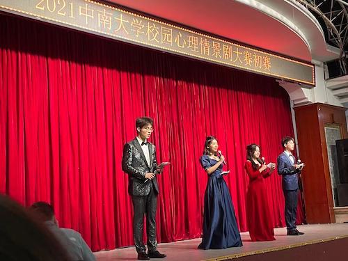 本次初赛邀请到心理健康中心马晓虹老师、祁琪老师、尚文老师,校话剧团团长王彦澄及校心联主席黄文丽担任专业评委。此外,还有各二级学院朋辈心理互助会会长组成大众评委团。伴随着主持人富有激情的开场白,大赛正式拉开序幕。