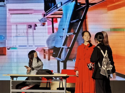 未来可期剧组以精心打磨的剧本、自然细腻的演技和用心周到的服化,为在场观众带来了一场别开生面的情景剧表演,赛出了风采,赛出了水平。此次大赛,在播撒欢笑与感动的同时,开拓了同学们认识与面对未来生活的新的视角——“活在当下,心有未来”,与迷茫的自己和解,在不断的探索与思考中,收获柳暗花明的明天,未来已来,将至已至!