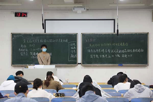 比赛开始前,据疫情防控要求,参赛选手在工作人员的组织引导下有序入场签到,在场人员自觉佩戴口罩。本次知识竞赛以闭卷笔试的形式展开,题目类型多样,涉及多个心理知识领域,具有一定的挑战性。虽然现场气氛颇为紧张,但法学院四位参赛同学仍然表现优异,在答卷过程中应对自如,稳定发挥,展示出自身丰富的心理知识储备与强大的临场应变能力。最终,比赛成绩于9日结算完毕并公布于众。我院代表队不负众望,力压群雄,以399分的优异成绩斩获本次竞赛初赛第一名,顺利晋级决赛。