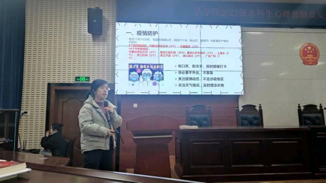 首先,由法学院黄曦副书记为同学们做期末寄语。黄曦老师叮嘱同学们一定要明确目标,惜时好学,孜孜以求;应当理性科观地看待成绩,重视学习过程,尽快适应大学考试模式;希望同学们争做向上、蓬勃、自信的青年学子,不断提升综合素质。黄曦老师还提醒同学们要时刻关注自身生命和财产安全,增强疫情防控意识,注重宿舍安全,减少寒假期间宿舍安全隐患。