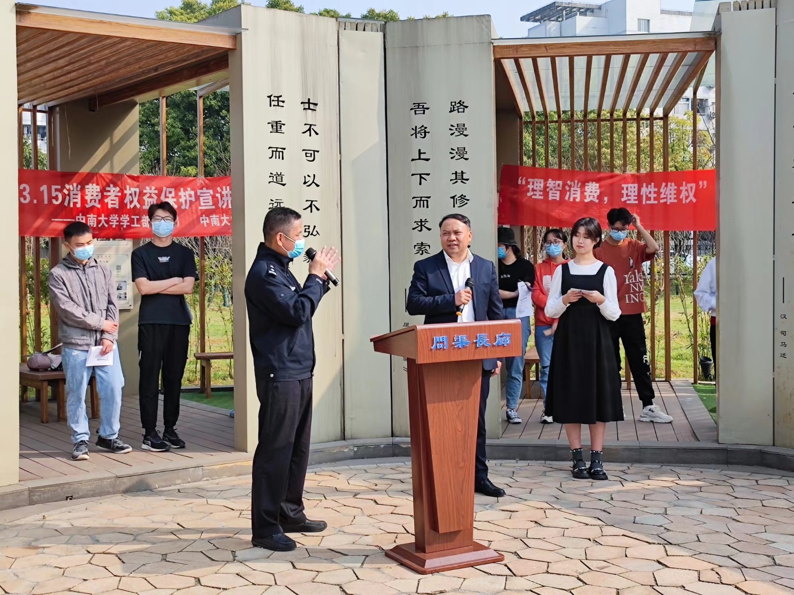 为进一步强化消费者维权意识,提高同学们对诈骗侵权的警惕性,2022年3月20日上午9:00,由william威廉英国官网学生学工部(处)主办、法学院承办的315消费者权益保护日主题宣讲活动于南校区问渠长廊顺利开展。此次活动以“理智消费,理性维权”为主题,有幸邀请到william威廉英国官网法学院李国海教授和云麓园社区程志警官担任此次活动的主讲人。
